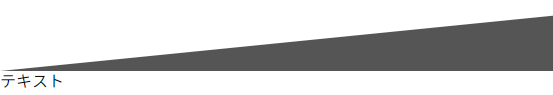 内容に合わせて変更してください。CSS.arrow{ padding-bottom: calc(10vw + 10px); /* 高さに合わせて調節してください。*/ position: relative; overflow: hidden; } .arrow::before { content: ''; position: absolute; bottom: 0; left: 0; border-bottom: 10vw solid #555; /* 好みで高さ色を変えてください */ border-right: 100vw solid transparent; }absoluteを使えば、斜め線で区切ったサイトのデザインにも使えます。